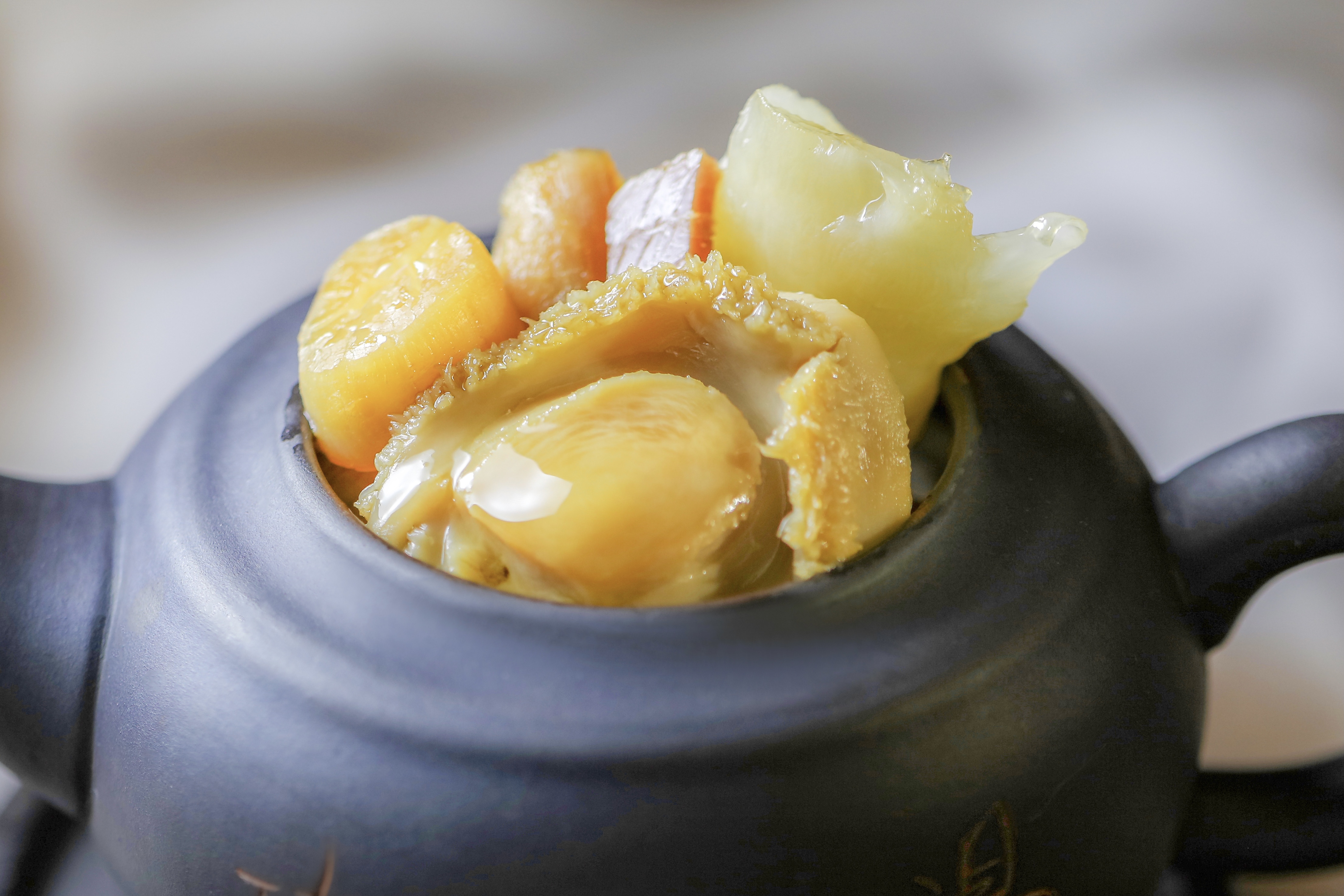 Được đầu bếp bật mí rằng Bào Ngư là nguyên liệu át chủ bài của món canh Kungfu này. Đây là loại ốc biển còn có tên là ốc khổng, cửu khổng hay thạch quyết minh do có hình dạng giống cái tai. Thịt của Bào Ngư có vị ngọt thanh dễ chịu, rất nhiều dinh dưỡng. Chính vì thế món canh Kungfu này có tác dụng hạ nhiệt, bổ thận và chống sự suy nhược của cơ thể.